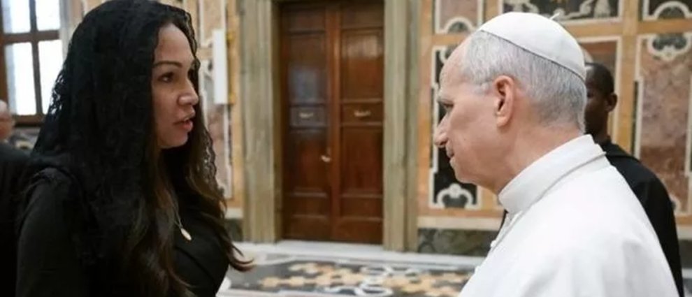 Sewell Setzer III se quitó la vida incitado por la compañía Character AI, con solo 14 años. Megan García, con el Papa León XIV.