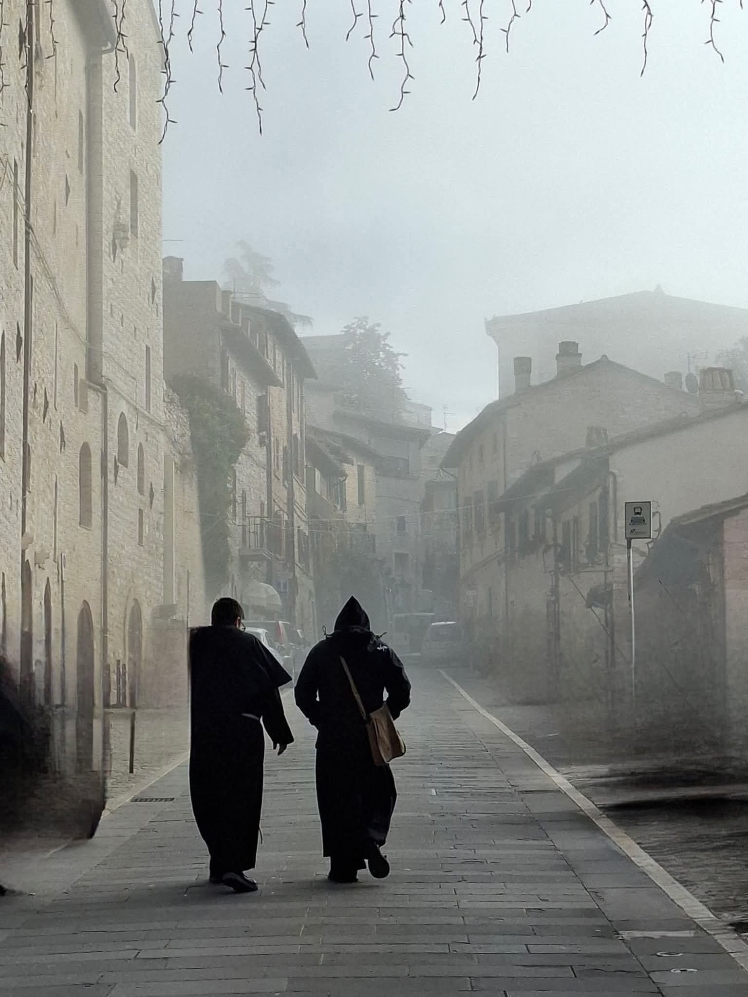 Recorrieron la ciudad, rezando en silencio por todos los que trabajaban en las tiendas y los jardines. Sonrieron a los niños, especialmente a los más pobres. Intercambiaron algunas palabras con los ancianos. Acariciaron a los enfermos. Ayudaron a una mujer a cargar un pesado recipiente lleno de agua. Después de recorrer toda la ciudad varias veces, San Francisco dijo: «Hermano Junípero, es hora de volver al convento».