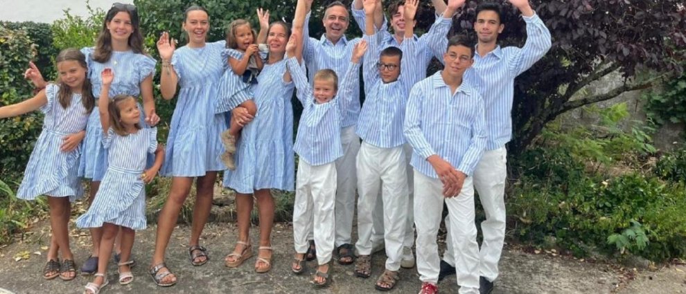 Los hijos son Antoine, Olivier, Agathe, Faustine, Guilhem, Symphorien, Domitille, Théophane, Blanche y Azélie. La ropa se transmite de hermano a hermana, los niños aprenden a terminarse el plato, a cortar una manzana ligeramente magullada, recogen huevos del gallinero a diario y no se van de vacaciones al otro lado del mundo, explican en un vídeo de Le Figaro (al final del artículo, en francés).